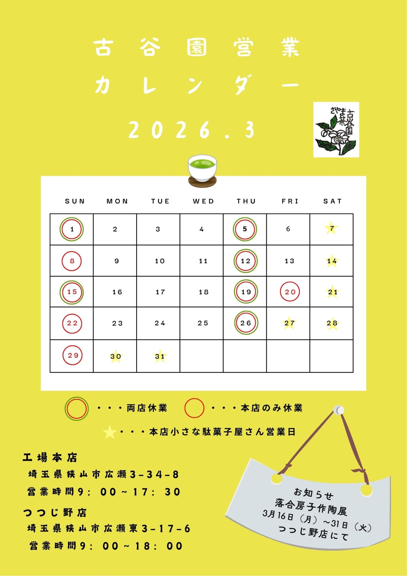 3月の営業案内